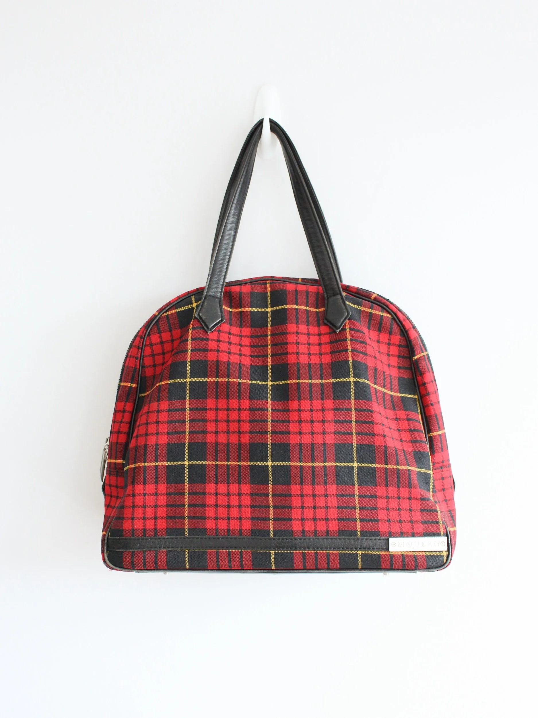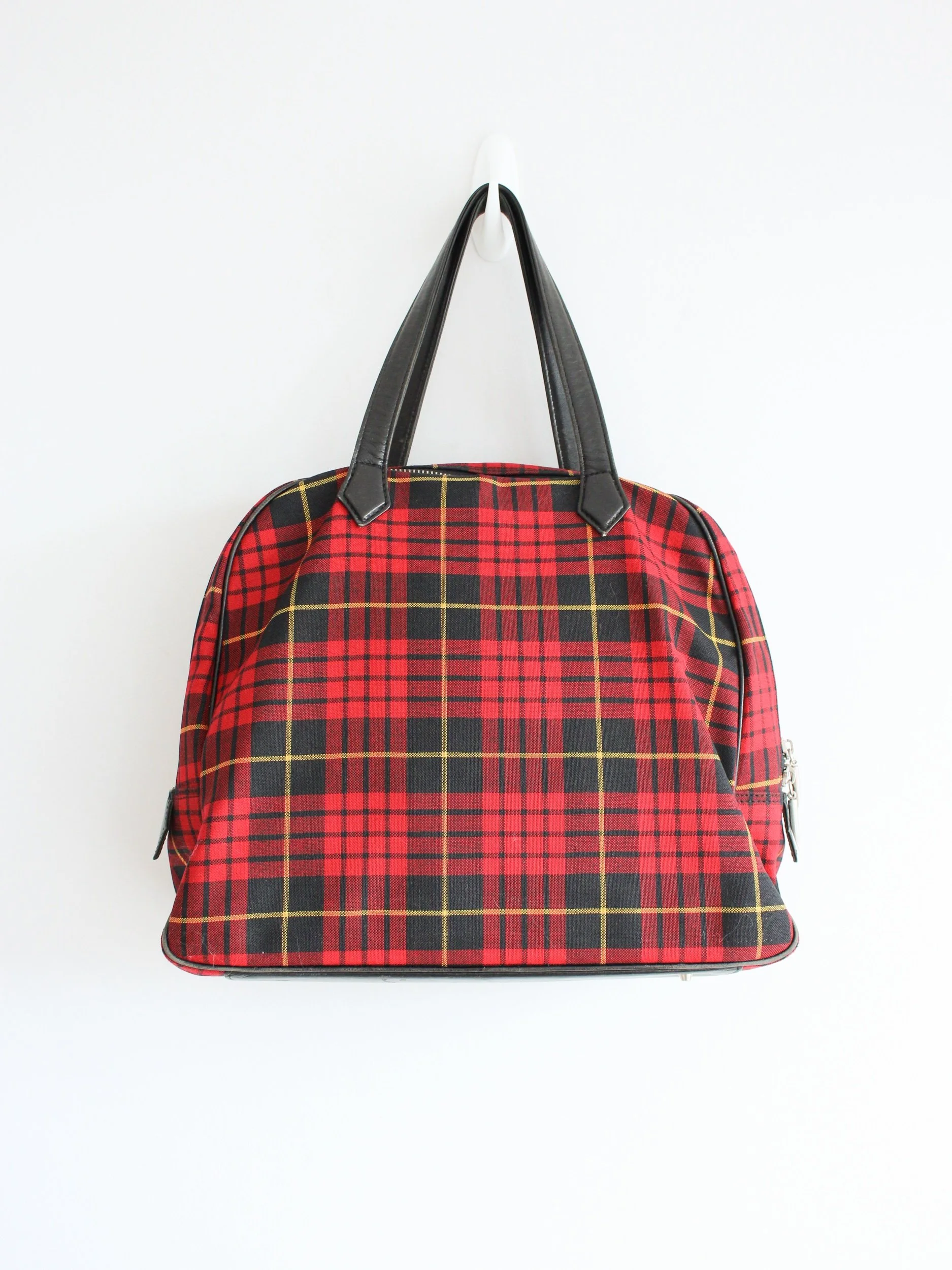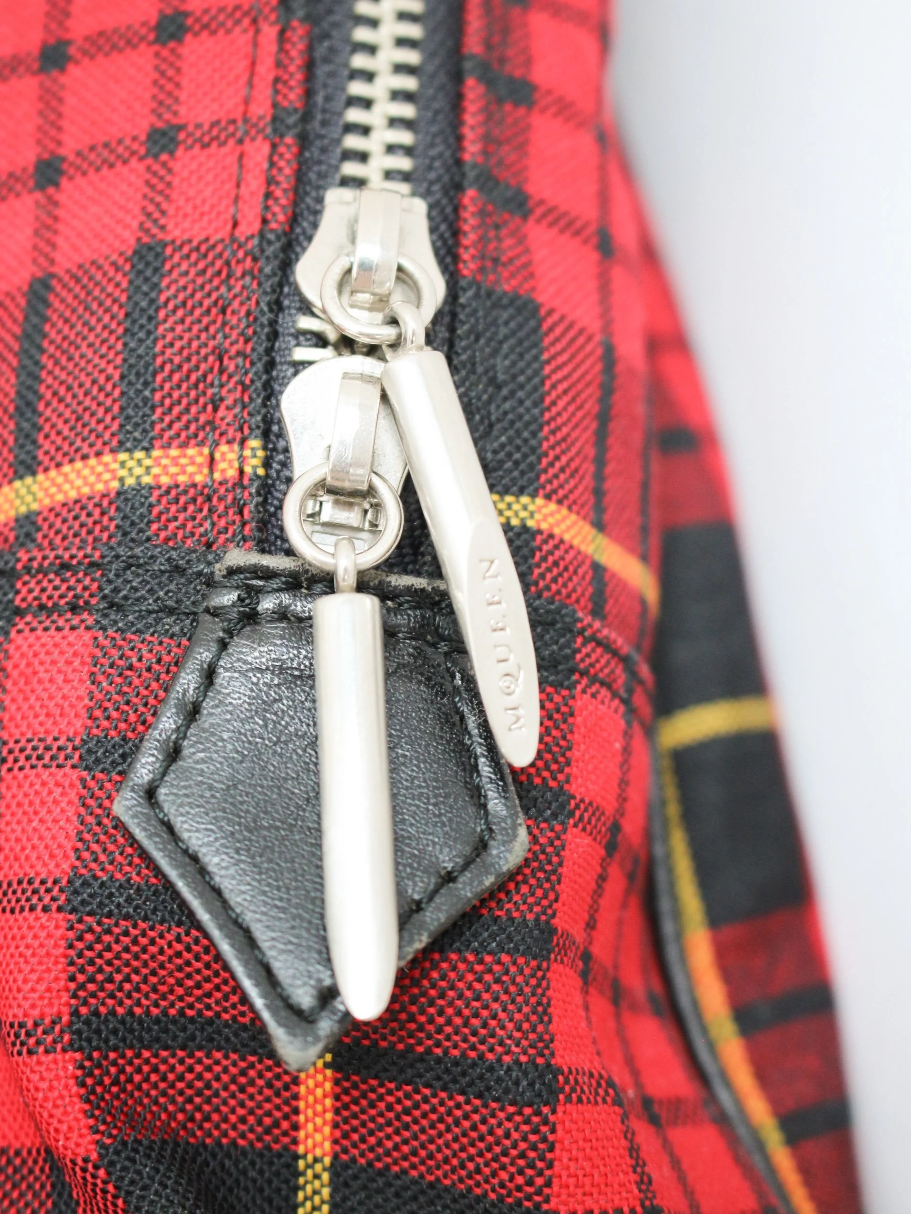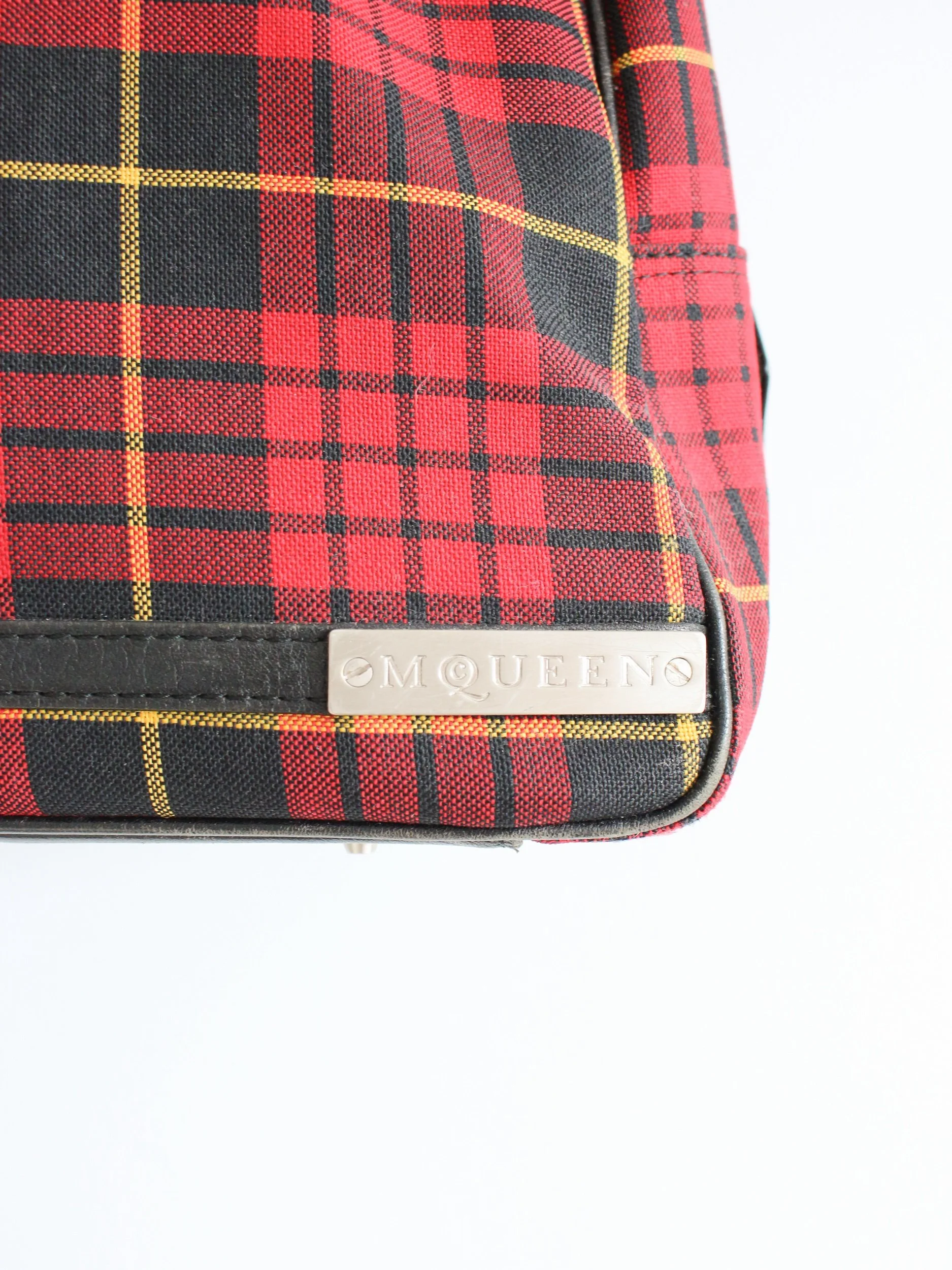 Alexander McQueen Autumn/Winter 1998 ‘Joan’ tartan wool ensemble, comprising of tailored sleeveless bodice, asymmetric 'J' curved skirt and handbag.
