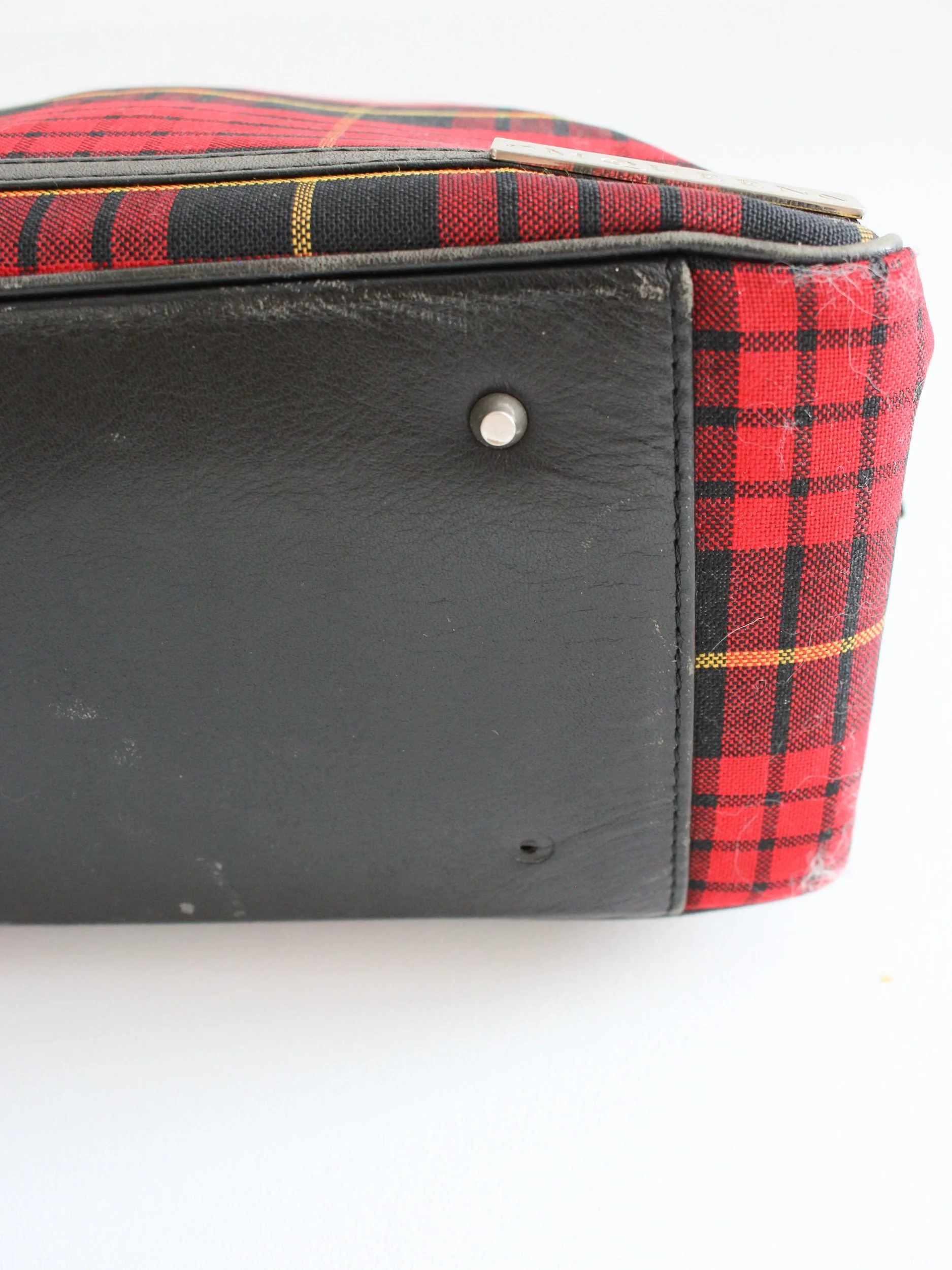 The bag is missing one metal foot but otherwise has no flaws.