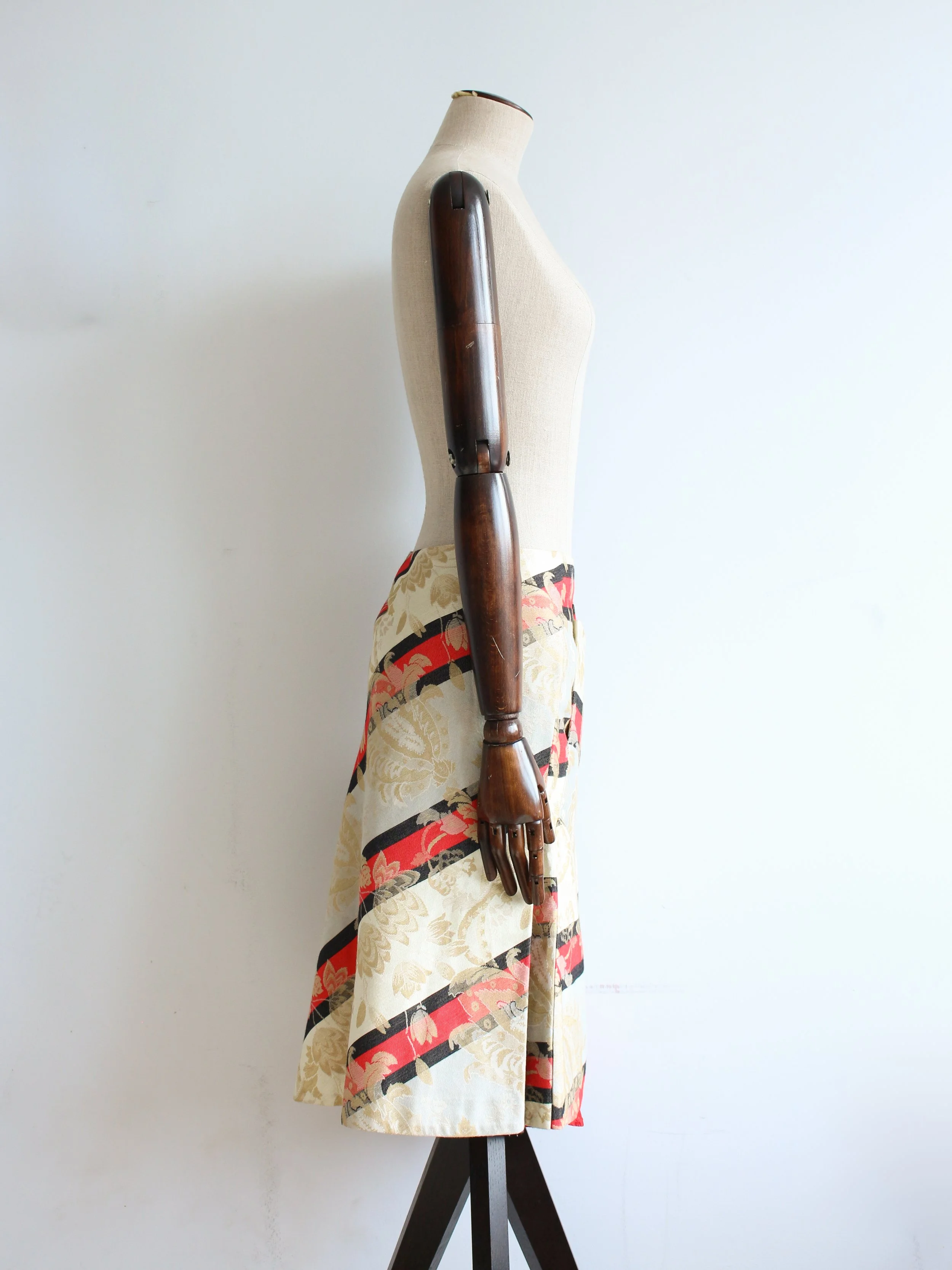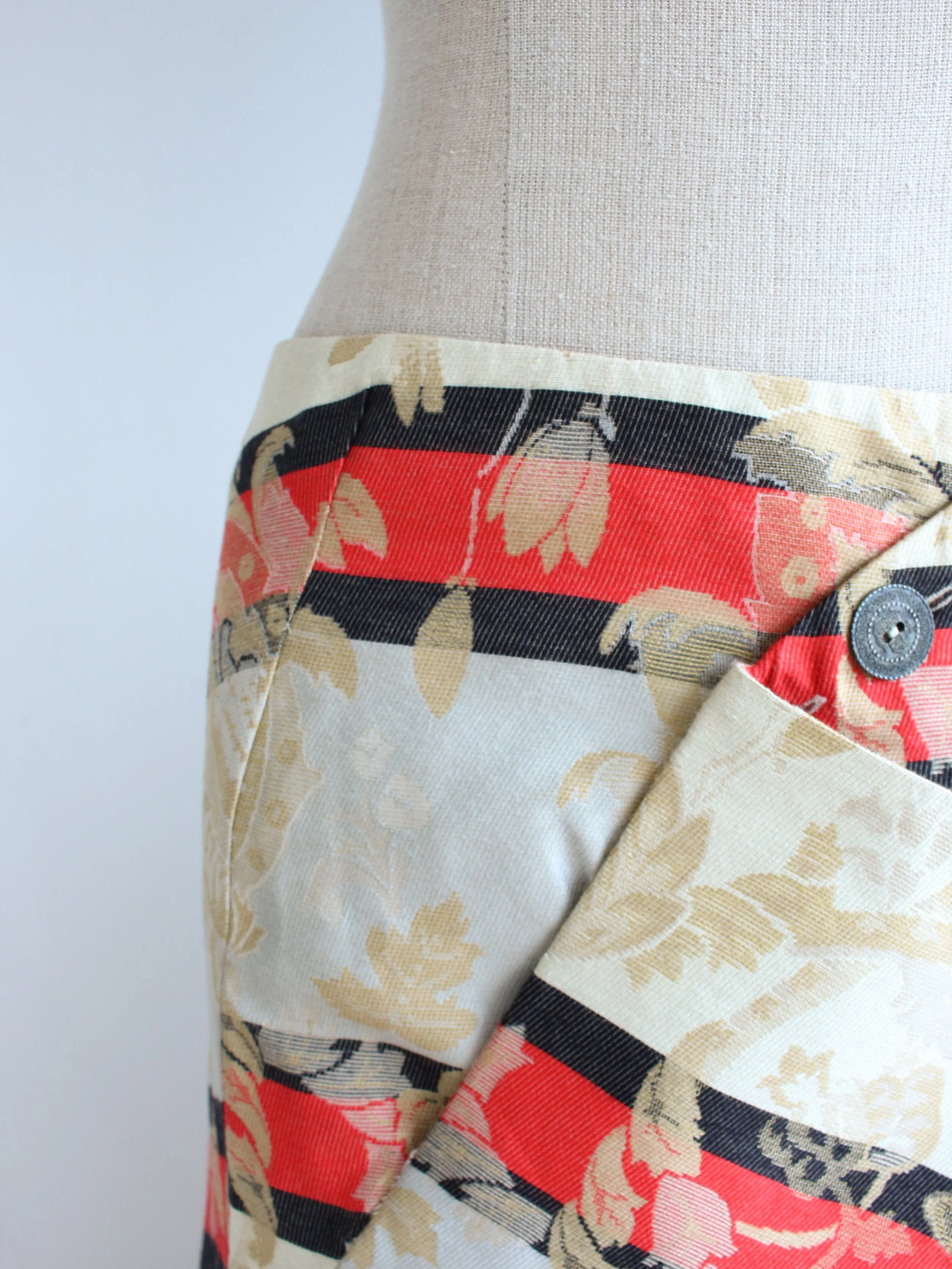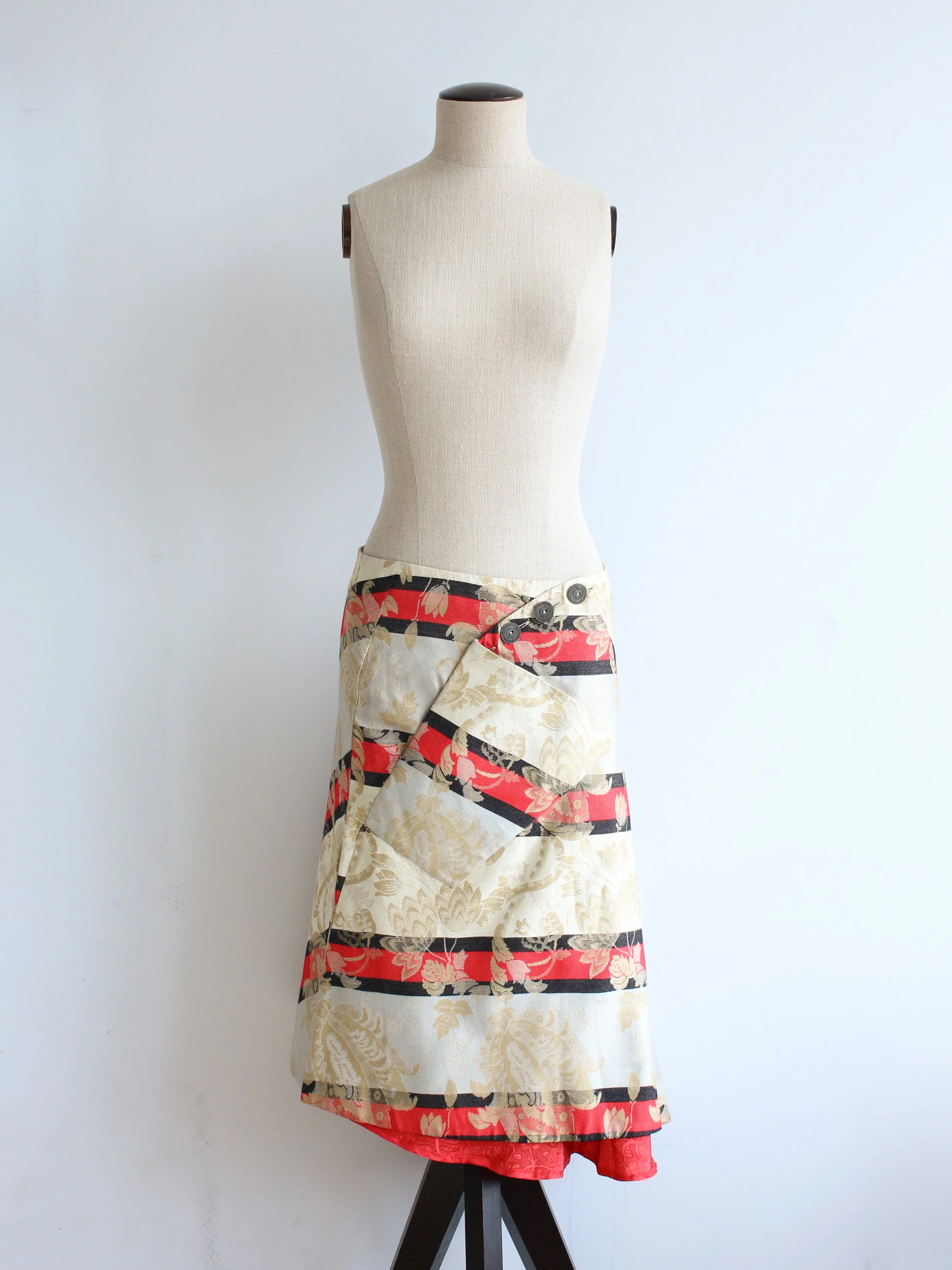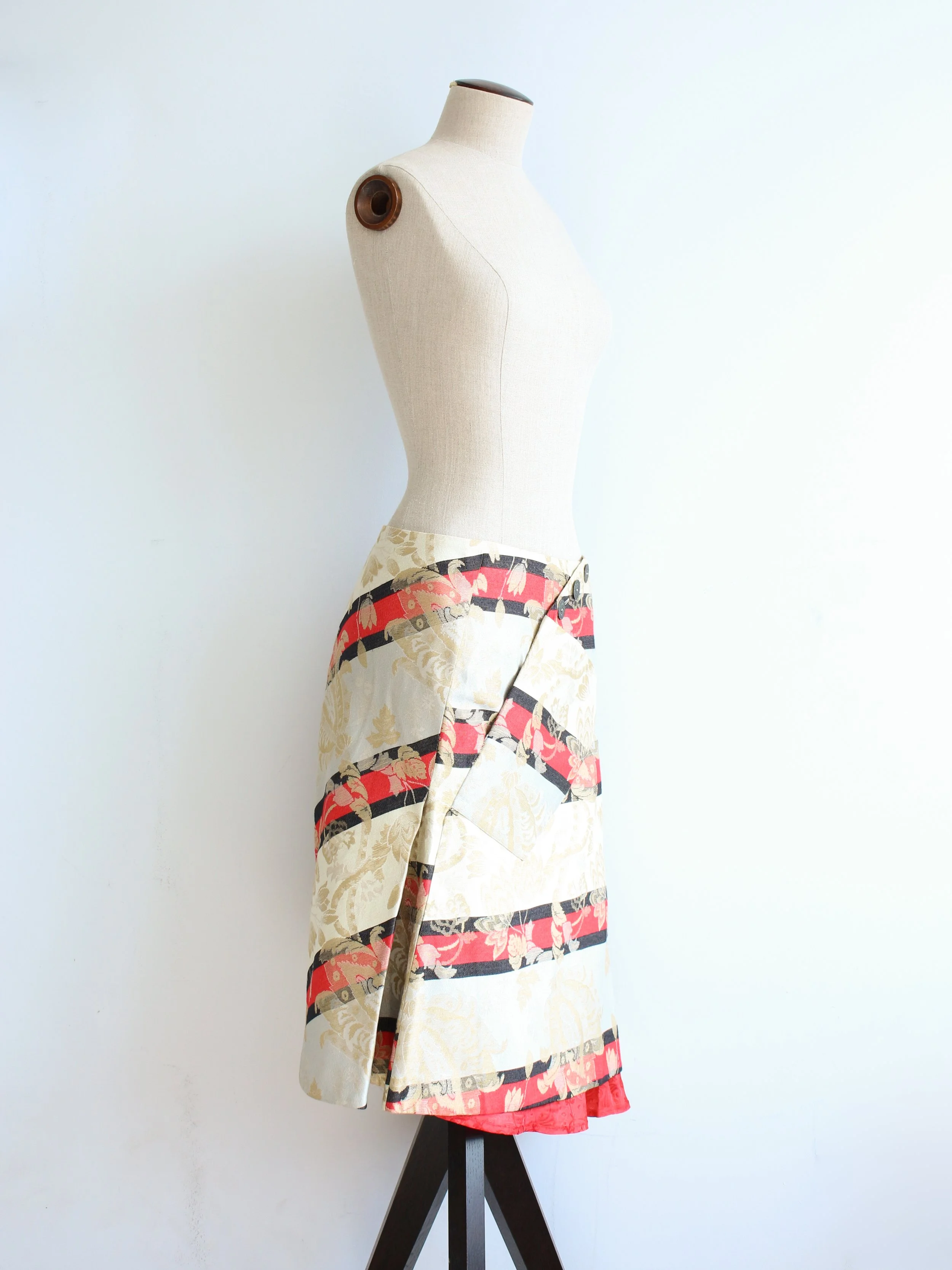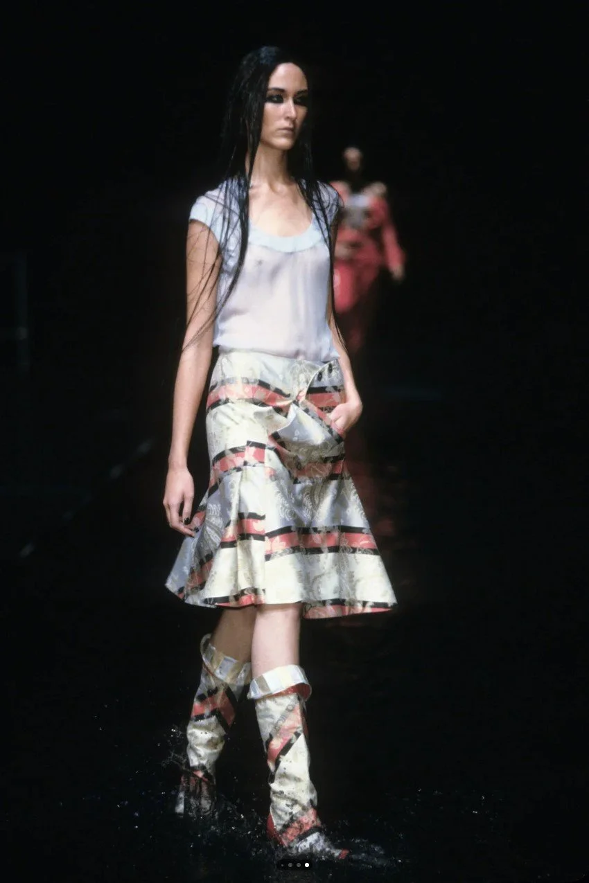 Alexander McQueen Spring/Summer 2000 ‘The Eye’ asymmetric striped skirt with floral weave.