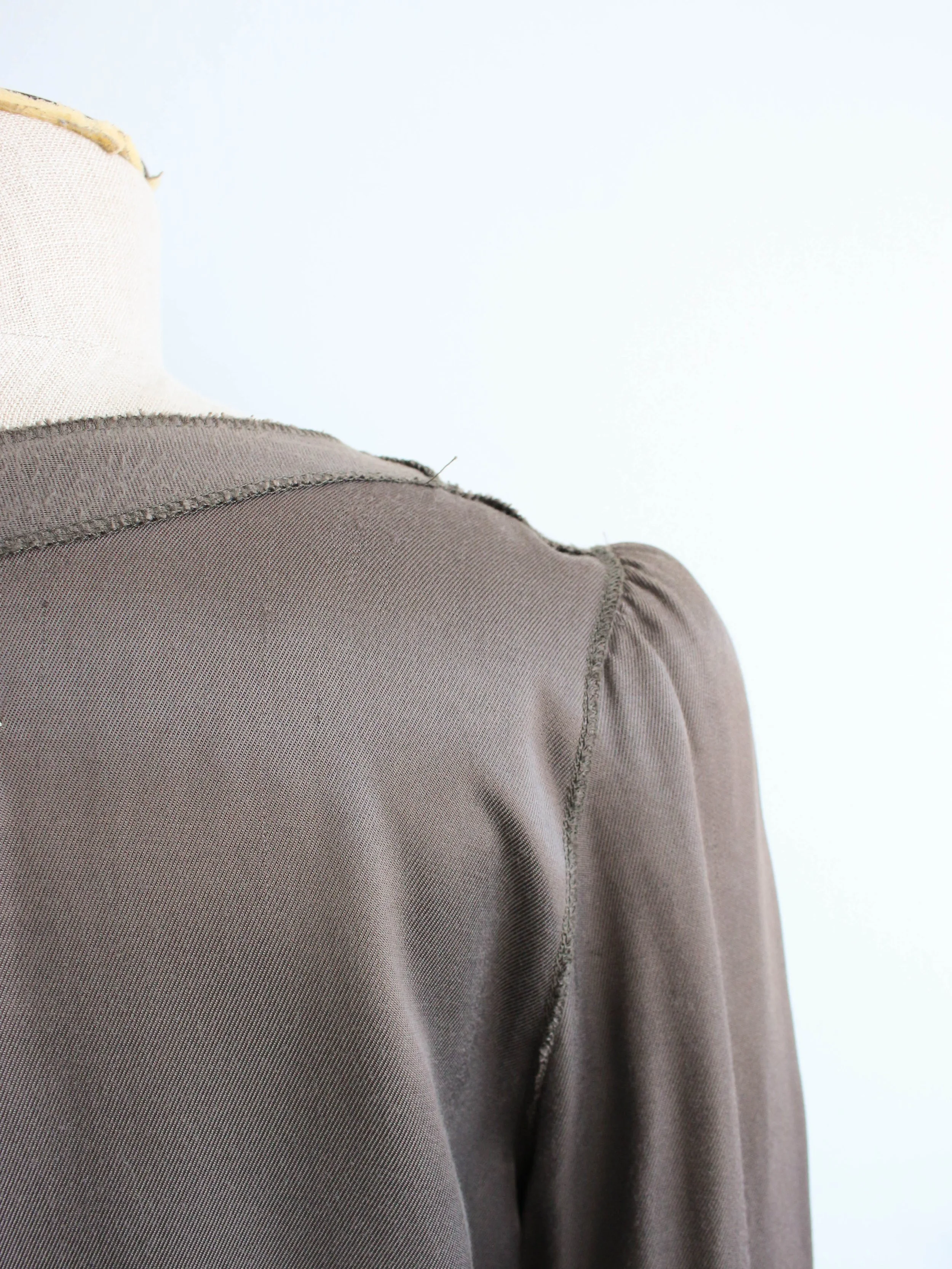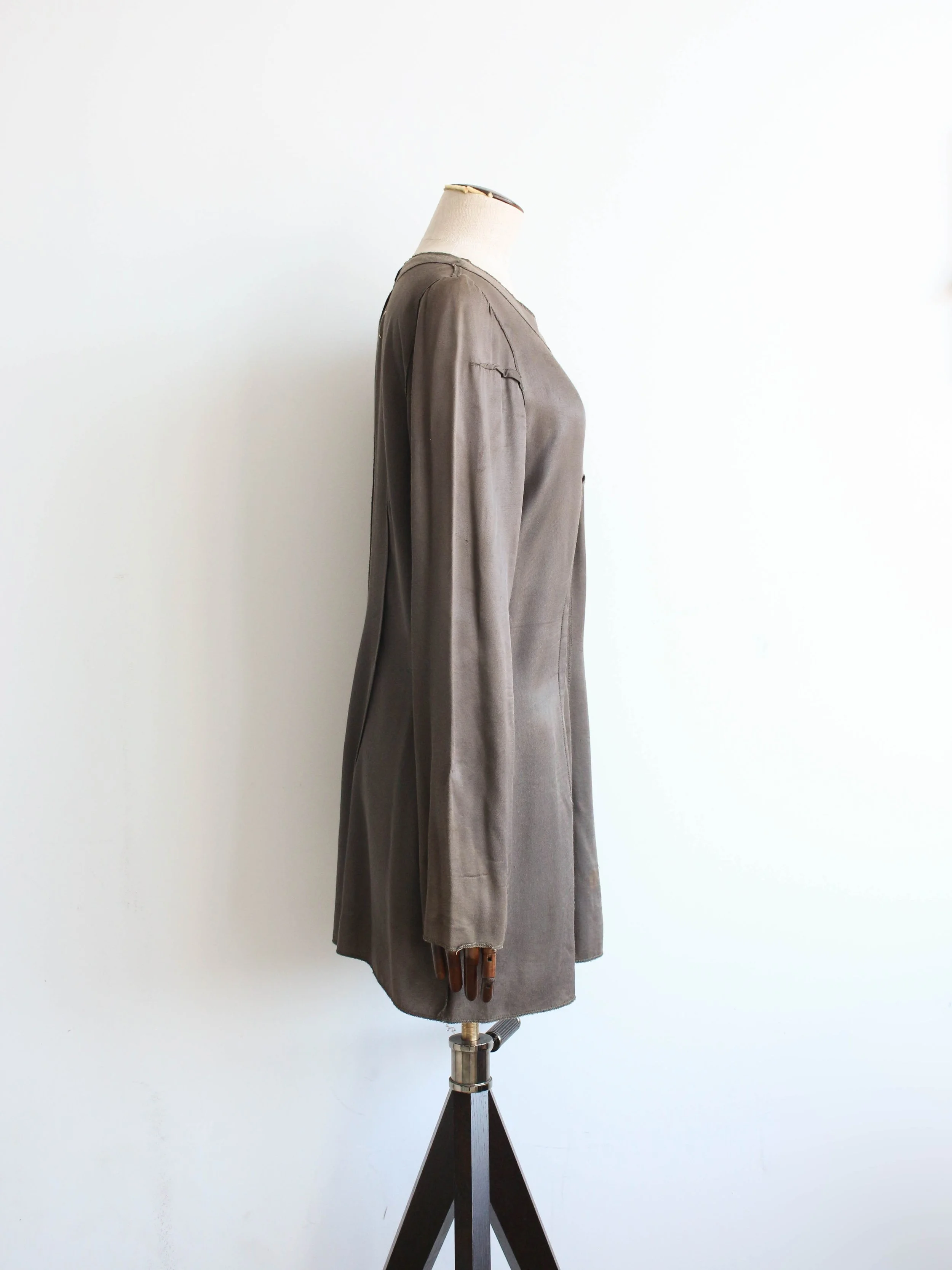 Martin Margiela Autumn/Winter 1990 longsleeve darted lining dress with exposed zipper and gathered shoulder seam.
